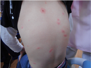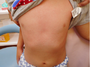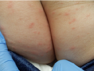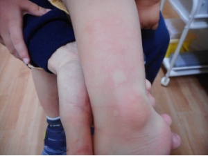 3歳以降に溶連菌感染は多くみられます。ざらざらした手触りの赤い皮疹が出ることがあります。