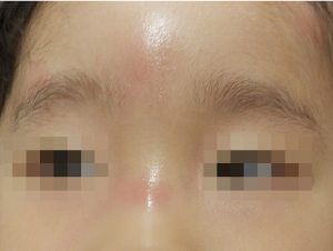 顔や腕などの露出部に赤くはれた皮疹がでます。