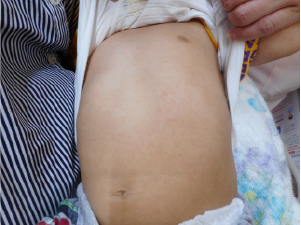 2歳までの小児に多くみられる病気です。高熱のあと、治る時期に胸やお腹、背中から発疹が出ます。