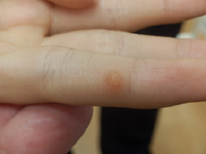 ウイルス感染でできるいぼ。手足に多く、硬く盛り上がります。液体窒素治療を行っています。