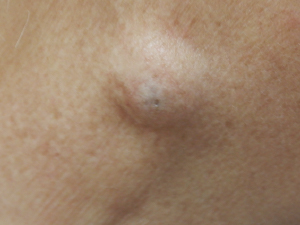 良性のいぼで、茶色く盛り上がり、加齢に伴って増加します。液体窒素治療を行っています。