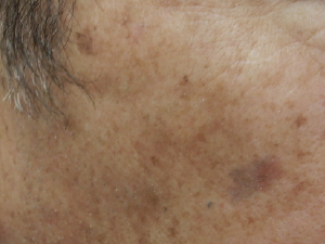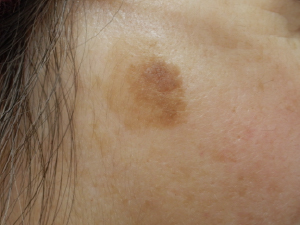 紫外線の影響でできる、年齢とともに増える茶色のしみです。しみ治療も対応しています。