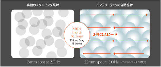 打ちむらを低減するインテリトラックを採用し、スピーディで安定した照射が可能です。
